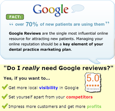 Google Reviews are the most influential online resource for attracting new Patients. Managing your online reputation is a key element of your dental practice.